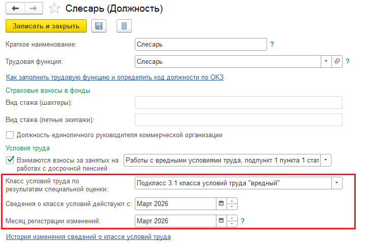 6. Добрый день! Если спецоценка проведена в марте 2026, то в должностях сотрудников классы условий труда должны быть указаны с марта 2026. Пример высылаю: