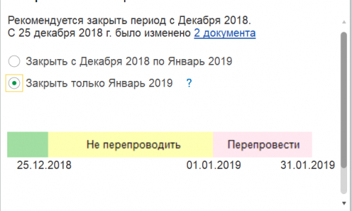 Да проведить декабря не нужно. Насколько я поняла вы начали вести учет в программе с 01.01.2019. Поэтому отмену проведения документов за 2018 г. следует сделать после того как закроете (выполните операцию Закрытия месяца) период в котором делали корректировку. При закрытии месяца, в котором была корректировка выберите Закрыть только (месяц корректировки) смотрите скрин. После этого данный период необходимо закрыть для редактирования данный период раздел Администрирование настройка пользователей и прав – Дата запрета изменений гиперссылка Настроить.