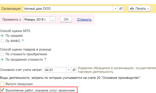 Татьяна,доброе утро.Мы не работам со счетом 20.А учетной политике мы должны ставить галку,что выполняем паботы?