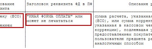 Ирина, верно заметили, уточняю — ИНАЯ ФОРМА ОПЛАТЫ- это будет в печатной форме чека,