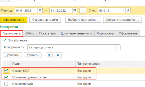 Чтобы сумму проверить, приложите, пожалуйста, ОСВ по счету 90.01.1 и в Показать настройки установите флаг По ставкам НДС. Скрин прилагаю.