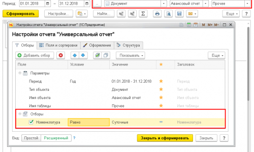 Хотели бы сформировать отчет по подотчетникам (учитываются на счете 71.01) с отбором по позициям «суточные расходы» из документов авансовых отчетов, чтобы посмотреть размеры суточных за период по сотрудникам. Как это можно сделать?
