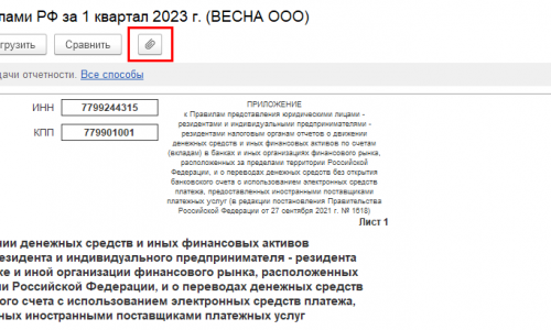 Добрый день! Наша организация открыла счет в банке за пределами РФ. По этому счету каждый квартал в налоговую инспекцию мы сдаем отчет» Движение средств по счету в банке за пределами РФ » с подтверждающими банковскими документами в виде выписок по каждому счету за отчетный квартал. Подскажите,пожалуйста,почему в программе 1С Бухгалтерия КОРП ,ред. 3.0 нельзя подгрузить файл в формате PDF со сканами выписок к отчету и отправить вместе с отчетом,как,например,в балансе прикрепляется пояснительная записка и отправляется вместе с балансом? В прошлом отчетном периоде мы отправляли файл с выписками отдельным письмом,но налоговый инспектор сделал замечание,что отчет и файл выписок должны быть отправлены вместе.