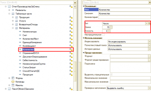 Типовая настройка округления реквизита «Количество» на вкладке «Материалы» заложена в конфигураторе по документу «Отчет производства за смену» так: Число, 15 знаков, в т.ч. 3 знака после запятой. Округление до тысячных по стандартной схеме.