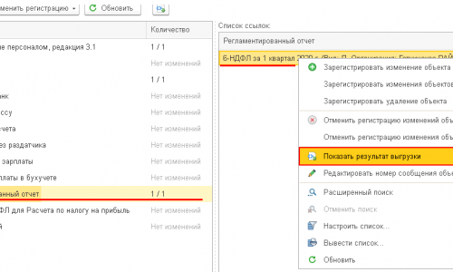 Правой кнопкой мышки вызовите контекстное меню и выберите команду «Показать результат выгрузки».