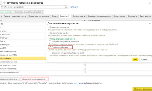 Правда, это будет на все строках табличной части «Возвраты». Проведение тут под вопросом, опять же должен посмотреть программист.