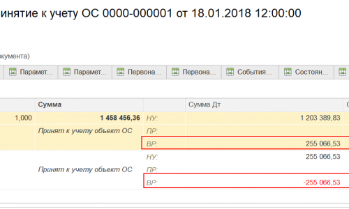 При принятии к учету образовалась ПР в стоимости предмета лизинга БУ-1 458 456,36 р., НУ-1 203 389,83 р., ПР-255 066,53 р.
