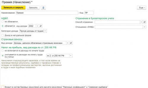 1. Создать новый вид начисления Премия. Раздел Зарплата и кадры – Справочники и настройки – Настройки зарплаты – Расчет зарплаты – Начисления.