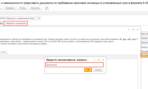 Сделайте уведомление через «Отчеты» — «1С-Отчетность» — «Уведомления, сообщения и заявления» — «Создать» — «Налоговый контроль» — «Уведомление о невозможности предоставления документов в срок».