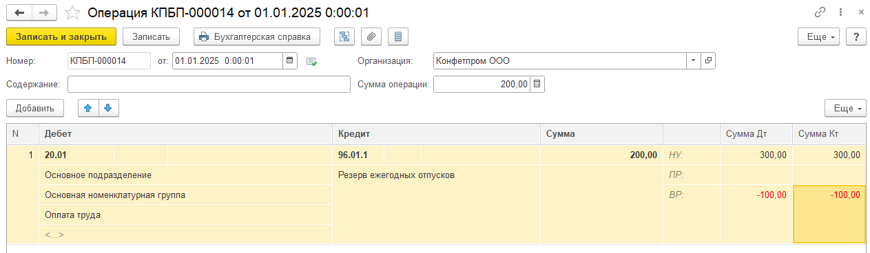 А 01.01.25 ввести другой документ Операция, в котором данную разницу отнести на ВР:
