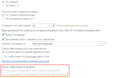 1. Если в учетной политике расчет себестоимость без использования плановой цены. Флажок Используется плановая себестоимость выпуска не установлен.