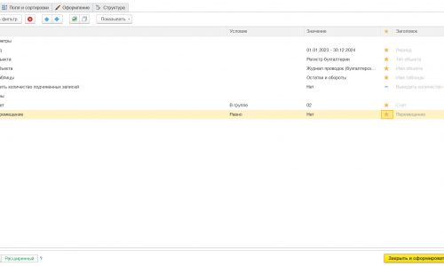 Если колонка Перемещение в полях отчета будет лишней, можете просто снять слева от поля Перемещение флажок видимости на вкладке Поля и сортировки.
