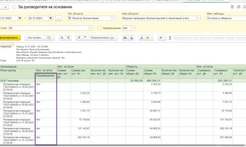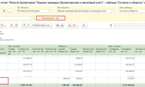 Я загрузила настройки отчета в другую тестовую базу КОРП — и данные в отчете отображаются также корректно и без перемещений и с перемещениями.