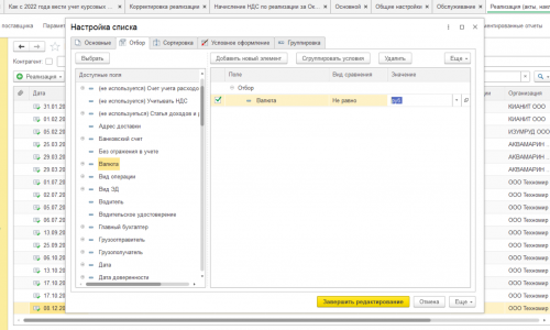 3. кн. «ЕЩЕ — Настроить список»: на вкладке Отбор выставляете условие «Валюта Не равно Руб.»