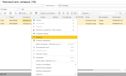 1. Входите в Журнал документов Реализация (акт, накладная, УПД)