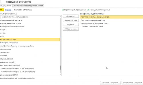 А при выполнении регламентной операции программа потребует перепровести документы месяца, чтобы восстановить корректную последовательность цепочки документооборота (ведь вы ее нарушите, когда будете выборочно перепроводить валютные документы).