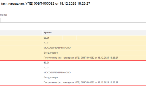 1. Внесли поступление услуг от Мосэнерго на 100 тыс. руб. Проводки: Дт 26 Кт 60.01 — 100 тыс руб. Скрин 1.