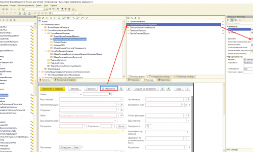 Вот эта кнопка и действие по ней, которая вызывает общую форму «Настройка платежных поручений и требований», как видите, там нет данных под конкретного контрагента, эти данные общие.