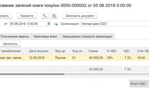 Для включения в корректировочную декларацию за первый квартал 2019 г. ранее не включенных сформируйте регламентную операцию Формирование записи книги покупок. Заполните документ по кнопке Заполнить, оставьте те СФ, которые надо включить в корректировочную декларацию по НДС. Поставьте флажок — Запись доп. листа. В поле Корректируемый период укажите дату первого квартала 2019 г..