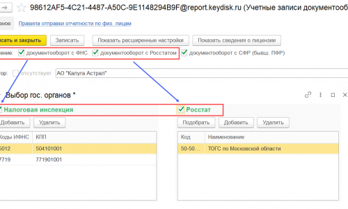 В тестовой базе попробовал создать второе подключение именно под Росстат — но так не получается. Система требует чтобы ФНС и Росстат были в одной учетной записи.