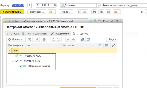 Для проверки ставки в документах поставщика сформируйте УО На вкладке Поля и сортировки укажите данные, которые вы хотите видеть в отчете На вкладке Структура по кнопке Добавить в открывшемся окне — поле Товары раскройте «+» выберите поле % НДС Затем выберите поле -Услуги и так же выберите % НДС. Должно получиться как на скрине. Как проверить 76.АВ посмотрите обсуждение подобного вопроса посмотрите здесь НДС как проверить авансы 62.02 76.АВ .