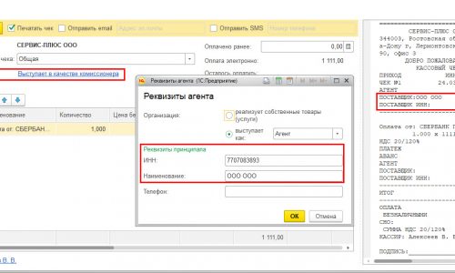 С другой стороны, если бы у вас использовалась агентская схема ли вы являлись платежным агентом, в этом случае указание ИНН и НАИМЕНОВАНИЯ доступны при смене параметра СОБСТВЕННЫЙ ТОВАР, на допустим АГЕНТ (во вложении пример, как это обычно выглядит)