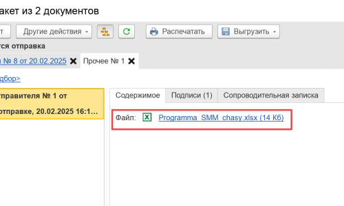 Ирина, я воспроизвел подобную ситуацию — отправил excel-файл через ЭДО. По отправке видно, что штамп проставлять 1С пока не умеет. Это у них только планируется к разработке. Но сам файл содержит сертификат и цифровую подпись (скрин 2). КС 2,3 не относится к формализованным документам, а значит не требует обязательного применения XML-формата, как например УПД. Отправленные в ЭДО и подписанные КЭП неформализованные документы обладают такой же юридической силой как формализованные документы. Признак подписи очевидно присутствует в присланном Вам от контрагента файле. Выгрузите пожалуйста присланные документы ЭДО во внешний файл и посмотрите, имеется ли там цифровая подпись к excel-файлу как у меня на скрине?