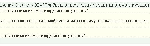 стр. 030 «Выручка от реализации амортизируемого имущества» — стр. 040 «Расходы связанные с реализацией амортизируемого имущества» + стр. 060 убыток от реализации амортизируемого имущества