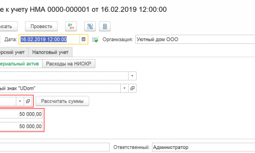Если вы имеете право списывать стоимость НМА единовременно, то в программе оформите следующие документы:
