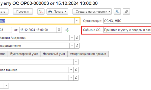 А вот данные из реквизита «События ОС» попадают в регистр и отображаются в Инвентарной карточке объекта. Если нужно для заполнения, можно задать свой вид (во вложении).