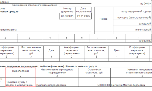 Данные записываются в регистр «Первоначальные сведения ОС (БУ)».
