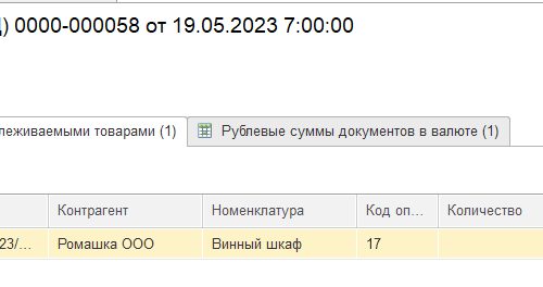 При создании документа, автоматически формируется регистр Операции с прослеживаемыми товарами, который и регистрирует данные в Отчете об операциях с товарами, подлежащими прослеживаемости.