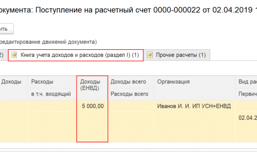 Если товар не отгрузили до конца квартала, то в документе Поступление на расчетный счет, с помощью ручной корректировки удалите суммы из колонок Доходы, Расходы и поставьте сумму в колонку Доходы (ЕНВД).