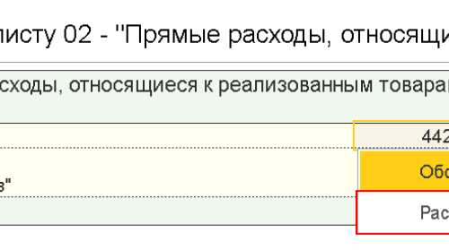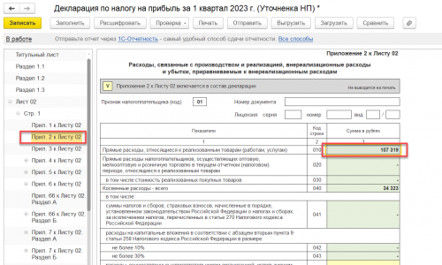 Лист 02 Приложение 2. Прямые и косвенные расходы в декларации по налогу на прибыль в 1С