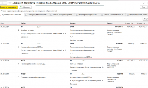 Продали только колбасу готовую Д 90.02 К 43 себестоимость 107 319,33
