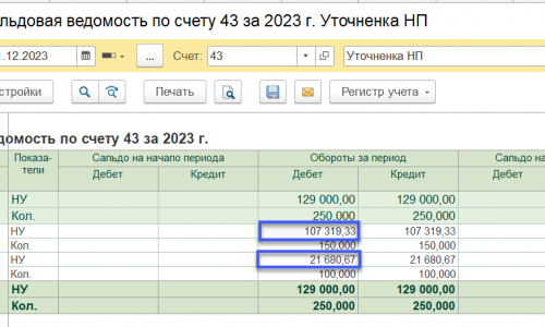 Себестоимость продукции и полуфабрикатов отличается в БУ и НУ в 1С