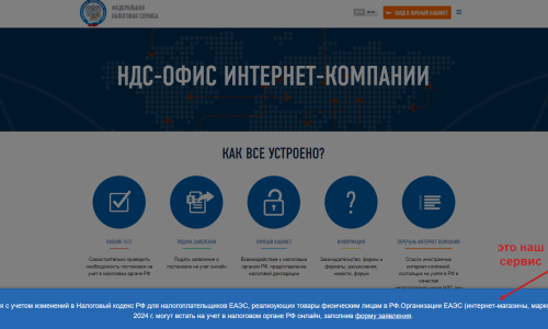 Вот такой же сервис в KG — НДС-ОФИС ИНОСТРАННОЙ ОРГАНИЗАЦИИ. В нем пока не видно изменений.