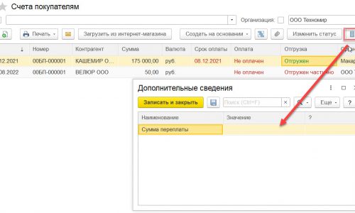 Дополнительные сведения можно заполнять прямо из журнала Счетов на оплату.