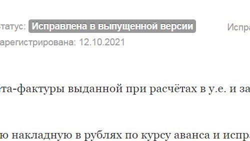 Не правильно рассчитывается НДС в печатной форме счёта-фактуры выданной при расчётах в у.е. и зачёте аванса на всю сумму расходной накладной.