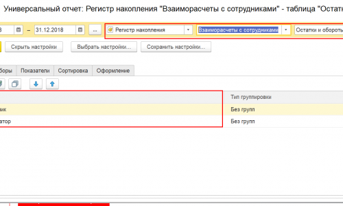 Сформируйте Универсальный отчет по регистру накопления — Взаиморасчеты с сотрудниками.