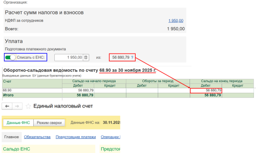Нет, вопрос в другом, к уплате НДФЛ 2145= начислен, я хотела не платить его, а списать с переплаты. Переплата по данным в ИФНС 198284,68, а по данным, которые отражаются для списания всего 3365,26. Хотя даже с учетом предстоящих платежей сумма переплаты значительно больше, но отражается другая сумма