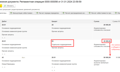 На 20 счете есть подразделение, на которое не нужно распределять затраты с 25 счета.