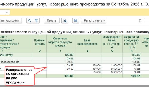 В апреле 2025 года был создан и принят к учету нематериальный актив — ПО, с мая начисляется амортизация Дт 20 Основное производство без указания продукции в доле 0.996, с указанием — в доле 0,001 (4 вида). Мы продаем копии программы на флеш-накопителе, а обновления через интернет без носителя. Поэтому у нас не всегда есть прямые затраты при продаже. Если настроить способ отражения расходов при принятии НМА с использованием коэффициентов, например, 0,001 на каждую продукцию, а остальное без распределения по продукции, как написано выше, то в тех месяцах, когда нет продаж и, соответственно, отчета производства, амортизация начисляется на всю продукцию, указанную в способе отражения расходов. Также, если появится новый вид продукции (основная программа с дополнительными опциями — расширениями), то придется изменять способ отражения расходов, что может изменить начисление амортизации в закрытых периодах в отчетном году. Можно ли более оптимальным способом настроить программу таким образом, чтобы небольшая часть амортизации попадала в себестоимость при выпуске продукции? Спасибо.