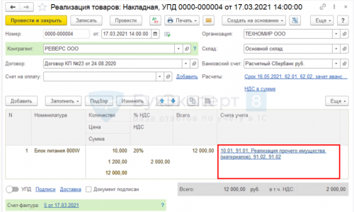 Заполнение строки 5а в УПД в 1С