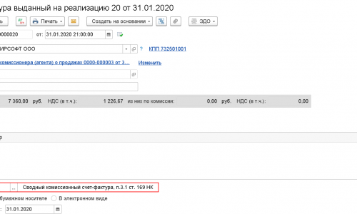 Сводный счет-фактура на общую сумму по отчету комиссионера.