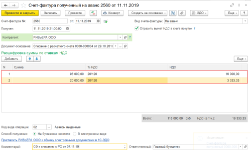 Как правильно оформить счет фактуру на аванс в бухгалтерии 3.0?
