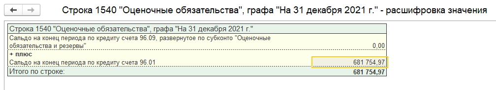 когда закрывали год не посмотрели, что резерв(оценочные обязательства) не вошел в баланс и сейчас разница между тем что сдали и что есть в данный момент по обороту 09 счета на сумму резерва.