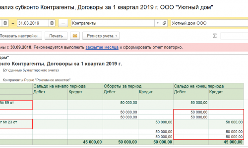 Отчет. Сформируйте отчет по проблемным контрагентам. Проверьте есть или нет развернутое сальдо.