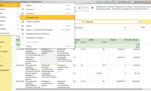 Добрый день. Да у нас было списание безнадежной дебиторской задолженности по сомнительным долгам, списывали через корриктировку задолженности сумму 73154,28 в 2017г. и 202279 в декабре 2018г. Ручных операций по 63 счету не было. Как проверить развернутое сальдо? Закрытие месяца делаю постоянно и отменяла закрытие и проводила заново. Как вам можно отправить несколько файлов?