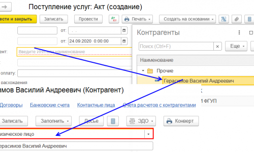 Добрый день. Среди поставщиков услуг появился первый замозанятый. Проверку проходит. Посмотрела Ваши рекомендации в ответах на вопросы других пользователей. Имею представление как провести его услугу. Но не могу завести его как контрагента (физическое лицо) в разделе «покупки и продажи». Пишет, что с таким инн никто не зарегистрирован. Если заводить как физическое лицо в разделе «зарплата и кадры», то тогда возникает либо заработная плата, либо оплата по договору гпх. Услуги мы должны отнести на 60 счет, а не на 76 или 70. Может я что-то не поняла? Спасибо
